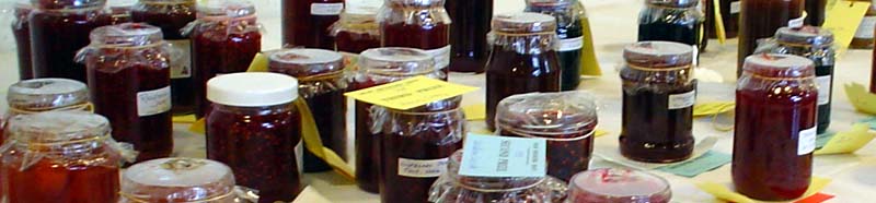 Jams and jellies, fill jams right to the top of the jar and cover with wax disc and cellophane cover while still hot. This way jams and jellies get a good seal. A non-metal lid is allowed.